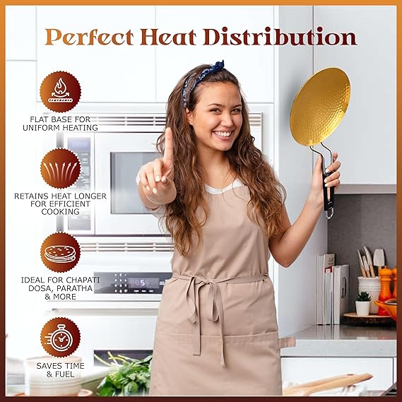 ZEENAT X Brass Roti Tawa - Teflon-Free, Non-Toxic Roti Tawa with PVC Handle - Pure Pital Brass Flat Pan for Chapati, Paratha & Healthy Cooking